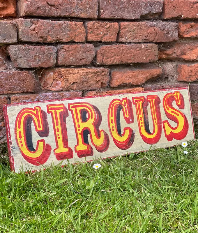 Roll Up! Roll Up! Here we have an original hand painted ‘Circus’ sign on board.